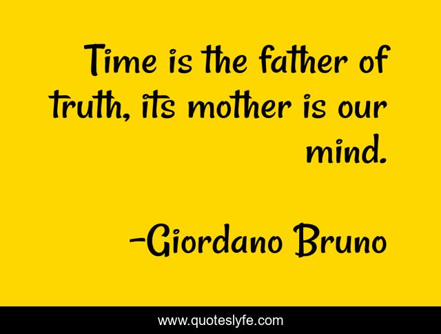 This page presents the quote "Time is the father of truth, its mother is our mind.". Author of this quote is Giordano Bruno. This quote is about father, truth, mother,.