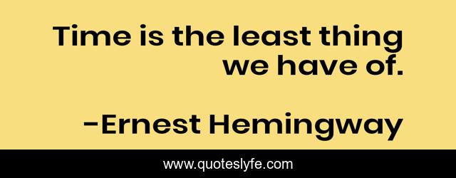 "Ernest Hemingway Quotes." Quoteslyfe.com, 2025. Fri. 05 Dec. 2025. <https://www.quoteslyfe.com/quote/Time-is-the-least-thing-we-have-301978>.