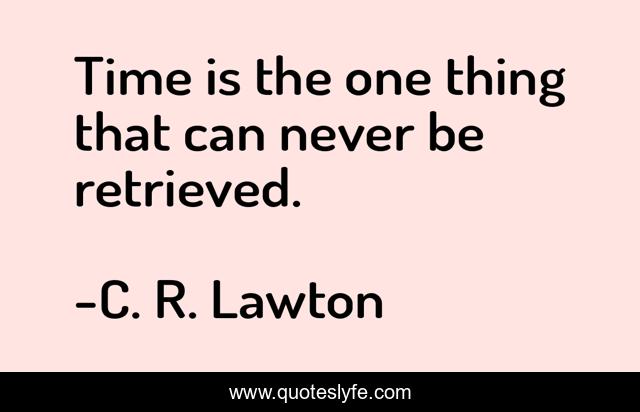 This page presents the quote "Time is the one thing that can never be retrieved.". Author of this quote is C. R. Lawton. This quote is about day, one,.