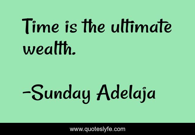 This page presents the quote "Time is the ultimate wealth.". Author of this quote is Sunday Adelaja. This quote is about time, wealth, ultimate,.