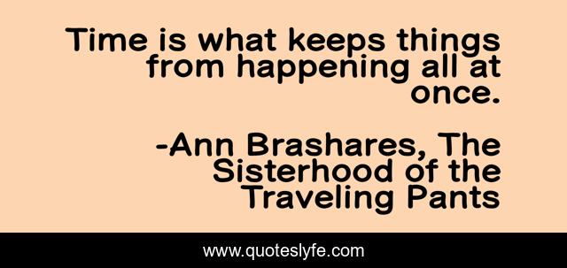 "Ann Brashares, The Sisterhood of the Traveling Pants Quotes." Quoteslyfe.com, 2025. Sat. 06 Dec. 2025. <https://www.quoteslyfe.com/quote/Time-is-what-keeps-things-from-happening-4795>.