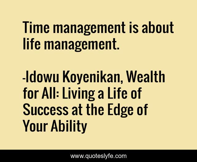 "Idowu Koyenikan, Wealth for All: Living a Life of Success at the Edge of Your Ability Quotes." Quoteslyfe.com, 2025. Mon. 08 Dec. 2025. <https://www.quoteslyfe.com/quote/Time-management-is-about-life-management-116025>.