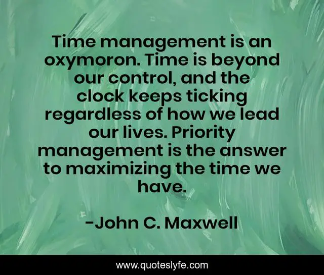 "John C. Maxwell Quotes." Quoteslyfe.com, 2025. Fri. 05 Dec. 2025. <https://www.quoteslyfe.com/quote/Time-management-is-an-oxymoron-Time-is-301784>.