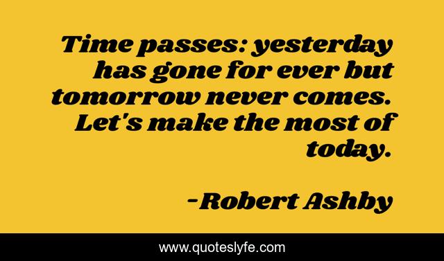 This page presents the quote "Time passes: yesterday has gone for ever but tomorrow never comes. Let's make the most of today.". Author of this quote is Robert Ashby. This quote is about philosophy-of-life, reflection, time,.