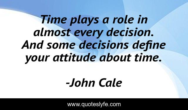 This page presents the quote "Time plays a role in almost every decision. And some decisions define your attitude about time.". Author of this quote is John Cale. This quote is about decision, decisions, time,.