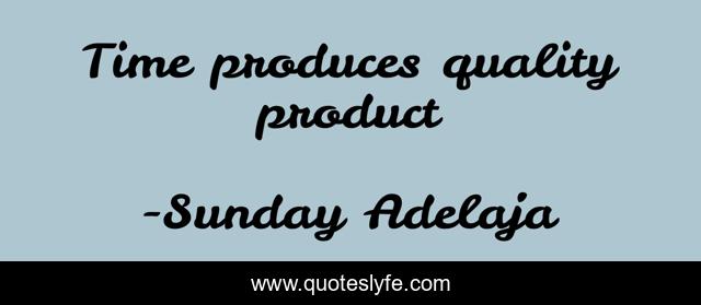 This page presents the quote "Time produces quality product". Author of this quote is Sunday Adelaja. This quote is about life, blessing, finance, money, work, wisdom, time-well-spent, job, joblessness,.