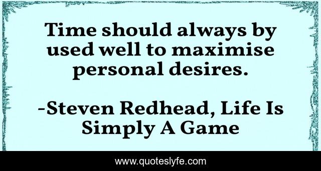 This page presents the quote "Time should always by used well to maximise personal desires.". Author of this quote is Steven Redhead, Life Is Simply A Game. This quote is about personal, maximise, desires, time,.
