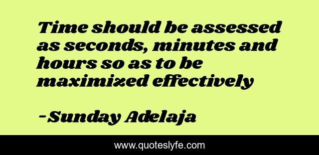 This page presents the quote "Time should be assessed as seconds, minutes and hours so as to be maximized effectively". Author of this quote is Sunday Adelaja. This quote is about life, work, finance, effective, money, blessing, maximization, time-management, job,.