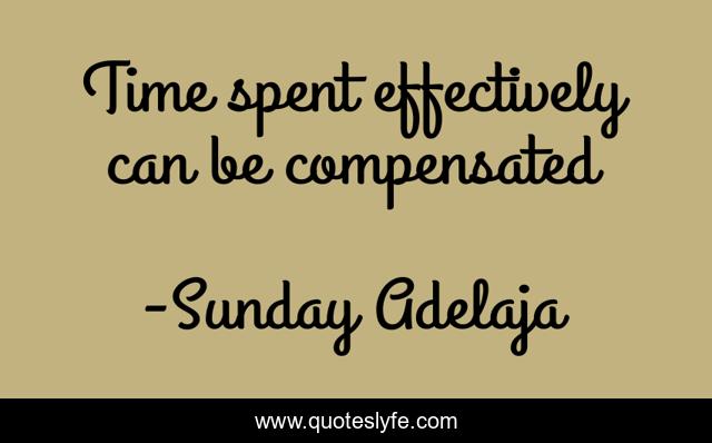 This page presents the quote "Time spent effectively can be compensated". Author of this quote is Sunday Adelaja. This quote is about life, work, finance, effective, money, blessing, compensation, effectively, job,.