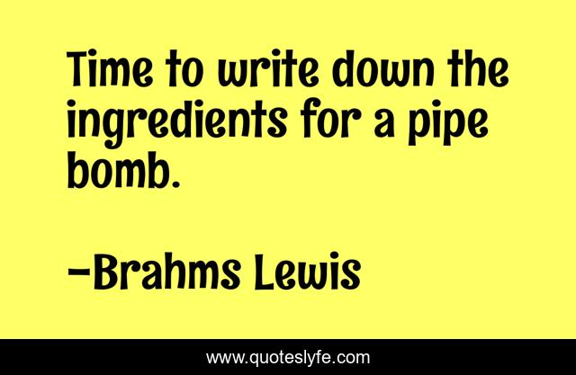 This page presents the quote "Time to write down the ingredients for a pipe bomb.". Author of this quote is Brahms Lewis. .