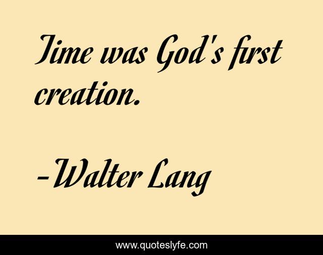 This page presents the quote "Time was God's first creation.". Author of this quote is Walter Lang. This quote is about god, creation, first,.