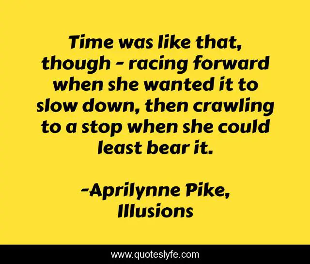 "Aprilynne Pike, Illusions Quotes." Quoteslyfe.com, 2025. Fri. 05 Dec. 2025. <https://www.quoteslyfe.com/quote/Time-was-like-that-though-racing-forward-38500>.