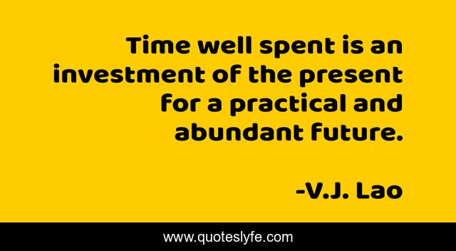 This page presents the quote "Time well spent is an investment of the present for a practical and abundant future.". Author of this quote is V.J. Lao. This quote is about time-well-spent, future, spending-time, time,.