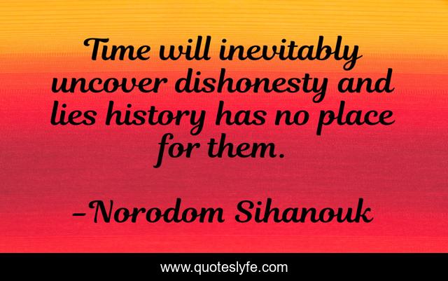 This page presents the quote "Time will inevitably uncover dishonesty and lies history has no place for them.". Author of this quote is Norodom Sihanouk. This quote is about place, history,.
