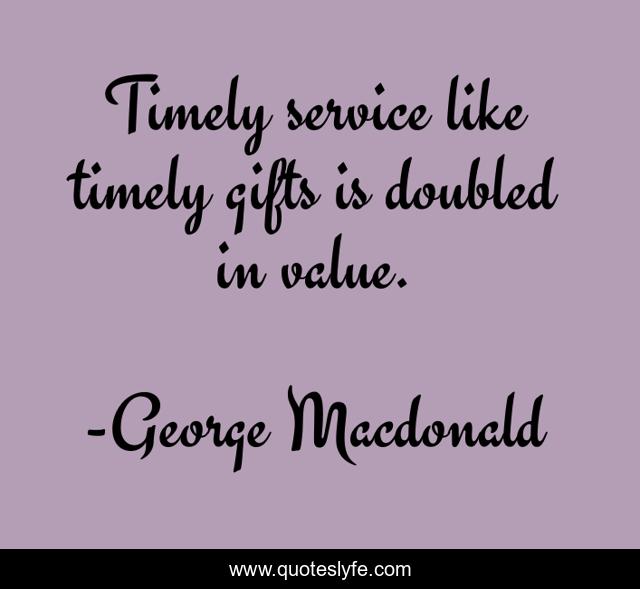 "George Macdonald Quotes." Quoteslyfe.com, 2025. Sun. 07 Dec. 2025. <https://www.quoteslyfe.com/quote/Timely-service-like-timely-gifts-is-doubled-271784>.