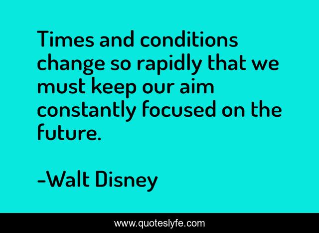 This page presents the quote "Times and conditions change so rapidly that we must keep our aim constantly focused on the future.". Author of this quote is Walt Disney. This quote is about aim, future,.