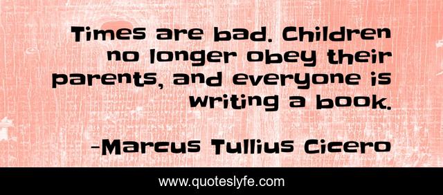 This page presents the quote "Times are bad. Children no longer obey their parents, and everyone is writing a book.". Author of this quote is Marcus Tullius Cicero. This quote is about times-never-change, humor, children,.