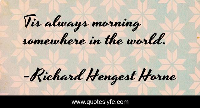 "Richard Hengest Horne Quotes." Quoteslyfe.com, 2025. Sat. 06 Dec. 2025. <https://www.quoteslyfe.com/quote/Tis-always-morning-somewhere-in-the-world-261956>.