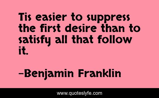 This page presents the quote "Tis easier to suppress the first desire than to satisfy all that follow it.". Author of this quote is Benjamin Franklin. .