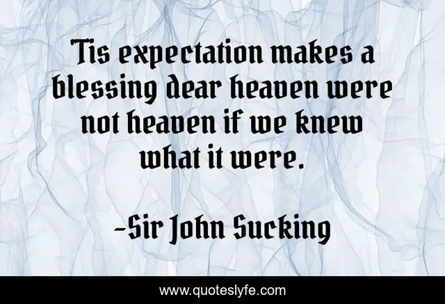 "Sir John Sucking Quotes." Quoteslyfe.com, 2025. Fri. 05 Dec. 2025. <https://www.quoteslyfe.com/quote/Tis-expectation-makes-a-blessing-dear-heaven-274622>.