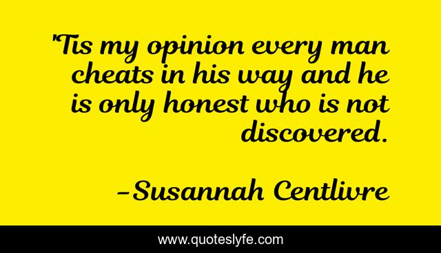 This page presents the quote "'Tis my opinion every man cheats in his way and he is only honest who is not discovered.". Author of this quote is Susannah Centlivre. .