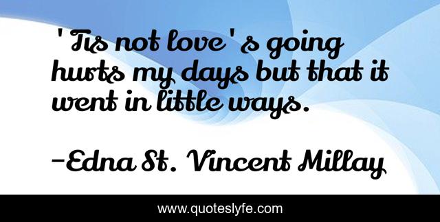 "Edna St. Vincent Millay Quotes." Quoteslyfe.com, 2025. Fri. 05 Dec. 2025. <https://www.quoteslyfe.com/quote/Tis-not-love-s-going-hurts-my-270160>.