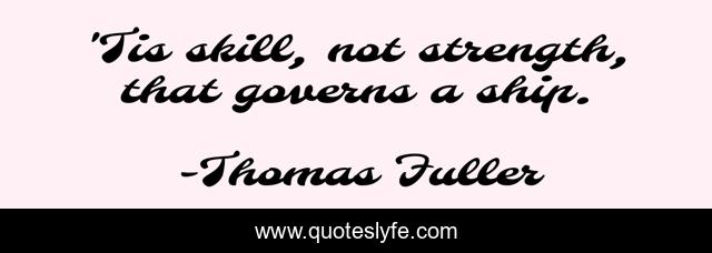 This page presents the quote "'Tis skill, not strength, that governs a ship.". Author of this quote is Thomas Fuller. This quote is about ship, skill, tis,.