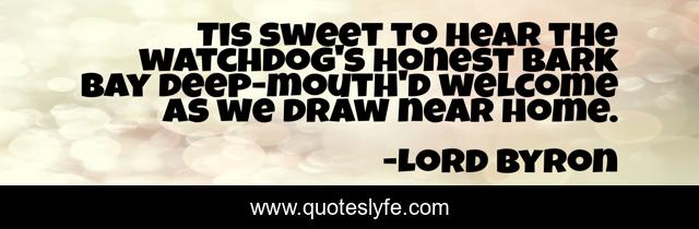 This page presents the quote "Tis sweet to hear the watchdog's honest bark Bay deep-mouth'd welcome as we draw near home.". Author of this quote is Lord Byron. .