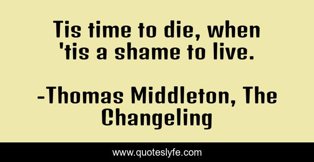 This page presents the quote "Tis time to die, when 'tis a shame to live.". Author of this quote is Thomas Middleton, The Changeling. This quote is about shame, life, death,.