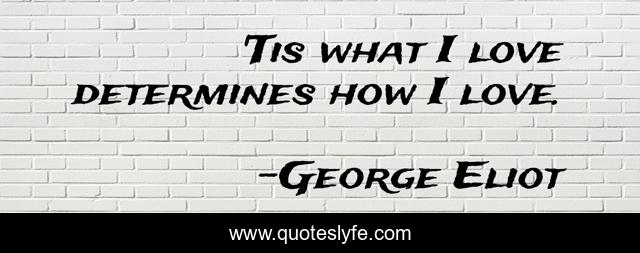 This page presents the quote "'Tis what I love determines how I love.". Author of this quote is George Eliot. .