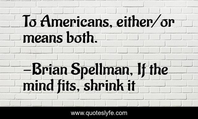 "Brian Spellman, If the mind fits, shrink it Quotes." Quoteslyfe.com, 2025. Sat. 06 Dec. 2025. <https://www.quoteslyfe.com/quote/To-Americans-either-or-means-both-228879>.