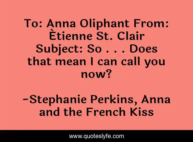 This page presents the quote "To: Anna Oliphant From: Étienne St. Clair Subject: So . . . Does that mean I can call you now?". Author of this quote is Stephanie Perkins, Anna and the French Kiss. .