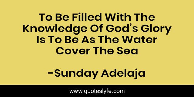 This page presents the quote "To Be Filled With The Knowledge Of God’s Glory Is To Be As The Water Cover The Sea". Author of this quote is Sunday Adelaja. This quote is about knowledge, glory, god, water, sea, filled,.