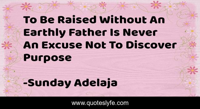 This page presents the quote "To Be Raised Without An Earthly Father Is Never An Excuse Not To Discover Purpose". Author of this quote is Sunday Adelaja. This quote is about excuse, father, purpose, raise,.