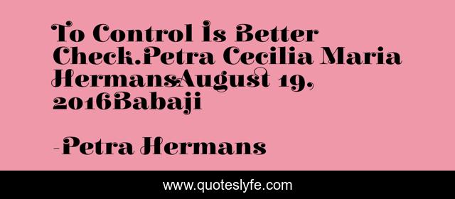 This page presents the quote "To Control Is Better Check.Petra Cecilia Maria HermansAugust 19, 2016Babaji". Author of this quote is Petra Hermans. .