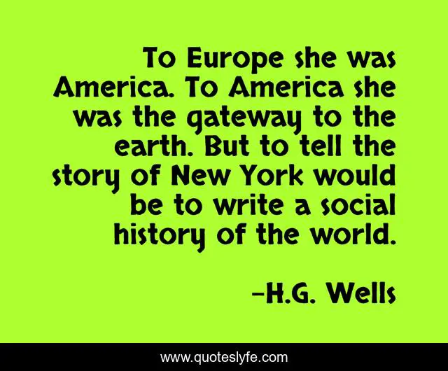 This page presents the quote "To Europe she was America. To America she was the gateway to the earth. But to tell the story of New York would be to write a social history of the world.". Author of this quote is H.G. Wells. .