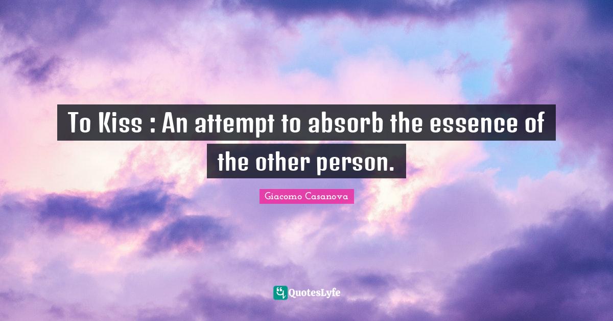 This page presents the quote "To Kiss : An attempt to absorb the essence of the other person.". Author of this quote is Giacomo Casanova. This quote is about essence, kissing, dating,.