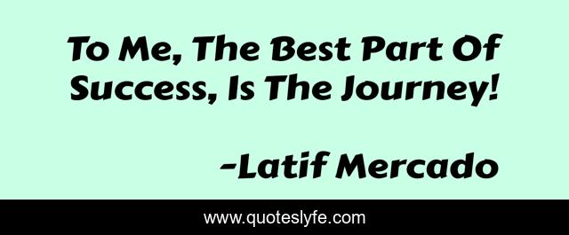 This page presents the quote "To Me, The Best Part Of Success, Is The Journey!". Author of this quote is Latif Mercado. This quote is about urban, latif, novels, author, freestyle, top, writer, books, music,.
