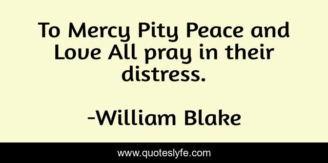 This page presents the quote "To Mercy Pity Peace and Love All pray in their distress.". Author of this quote is William Blake. .