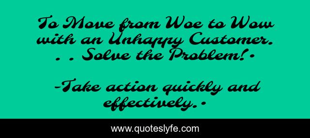 This page presents the quote "To Move from Woe to Wow with an Unhappy Customer. . . Solve the Problem!•". Author of this quote is Take action quickly and effectively.•. .