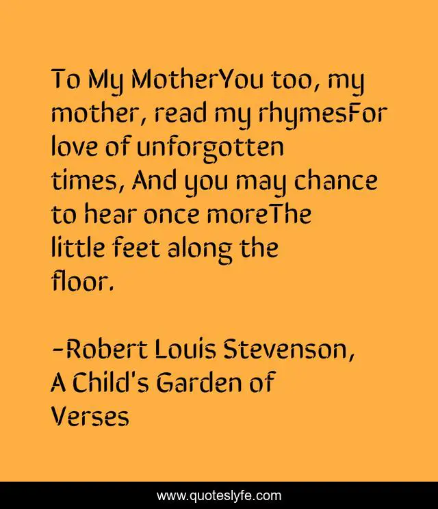 "Robert Louis Stevenson, A Child's Garden of Verses Quotes." Quoteslyfe.com, 2025. Fri. 05 Dec. 2025. <https://www.quoteslyfe.com/quote/To-My-MotherYou-too-my-mother-read-191000>.