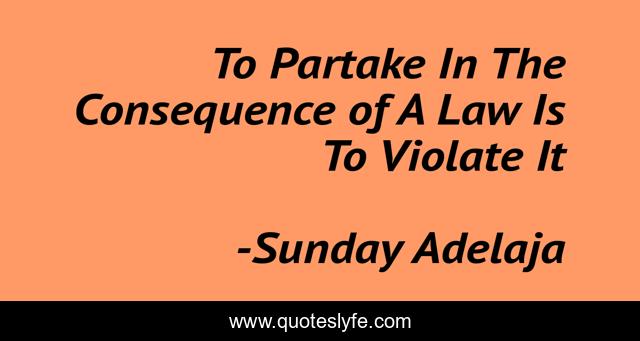 This page presents the quote "To Partake In The Consequence of A Law Is To Violate It". Author of this quote is Sunday Adelaja. This quote is about consequence, law, violate, partake,.