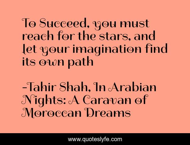 This page presents the quote "To Succeed, you must reach for the stars, and let your imagination find its own path". Author of this quote is Tahir Shah, In Arabian Nights: A Caravan of Moroccan Dreams. This quote is about imagination, inspirational, success, enthusiasm,.