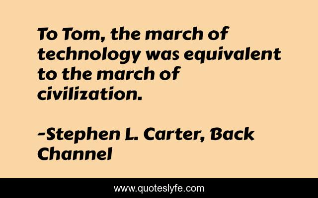 "Stephen L. Carter, Back Channel Quotes." Quoteslyfe.com, 2025. Tue. 09 Dec. 2025. <https://www.quoteslyfe.com/quote/To-Tom-the-march-of-technology-was-180972>.