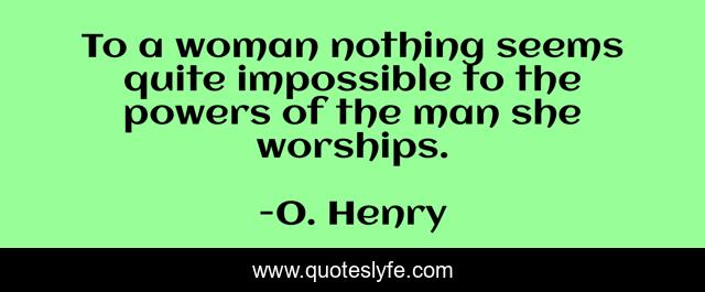 "O. Henry Quotes." Quoteslyfe.com, 2025. Sat. 06 Dec. 2025. <https://www.quoteslyfe.com/quote/To-a-woman-nothing-seems-quite-impossible-162651>.