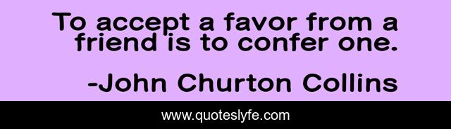 This page presents the quote "To accept a favor from a friend is to confer one.". Author of this quote is John Churton Collins. .