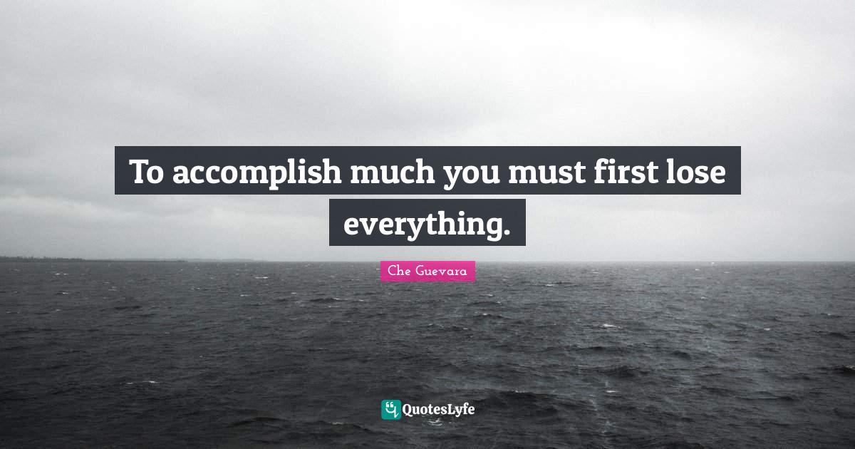"Che Guevara Quotes." Quoteslyfe.com, 2026. Tue. 13 Jan. 2026. <https://www.quoteslyfe.com/quote/To-accomplish-much-you-must-first-lose-462392>.