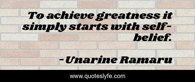This page presents the quote "To achieve greatness it simply starts with self-belief.". Author of this quote is Unarine Ramaru. This quote is about self-belief, success, greatness,.