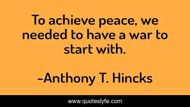 This page presents the quote "To achieve peace, we needed to have a war to start with.". Author of this quote is Anthony T. Hincks. This quote is about need, peace, war, philosophy,.