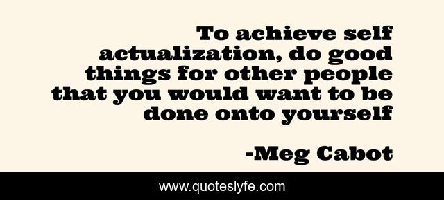 This page presents the quote "To achieve self actualization, do good things for other people that you would want to be done onto yourself". Author of this quote is Meg Cabot. .